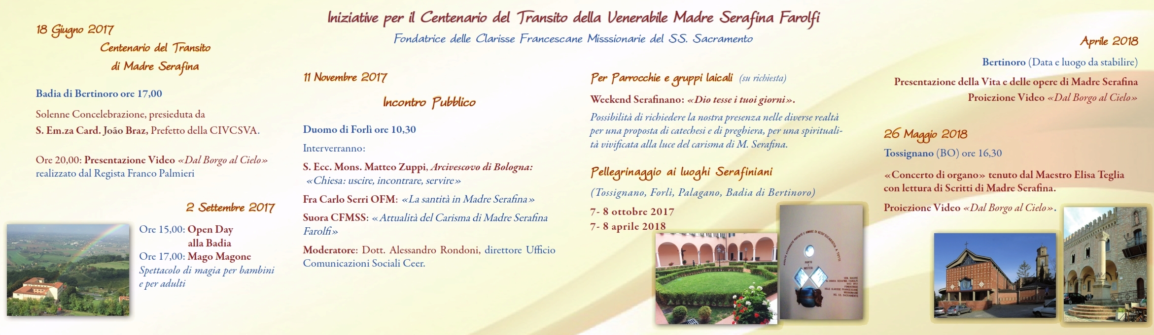Iniziative per il Centenario del Transito della Venerabile Madre Serafina Farolfi